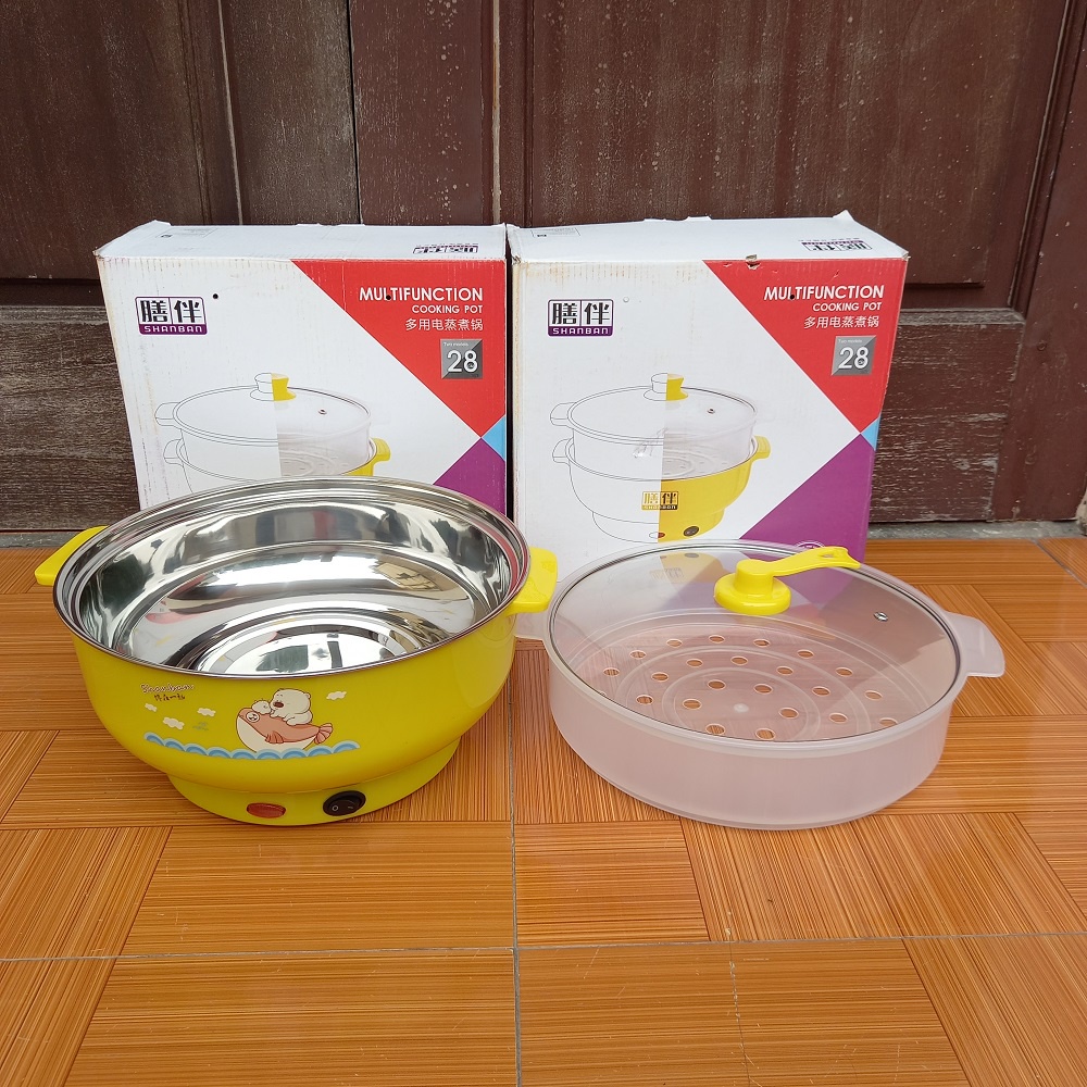 Giới thiệu Nồi lẩu điện nồi hấp điện mini 2 tầng chống dính đa năng 18cm Tặng xửng hấp (Ca nấu mì nấu lẩu 2 tầng)
