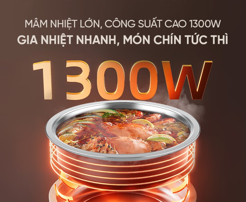 - Công suất 1300W nấu chín nhanh, tiết kiệm thời gian