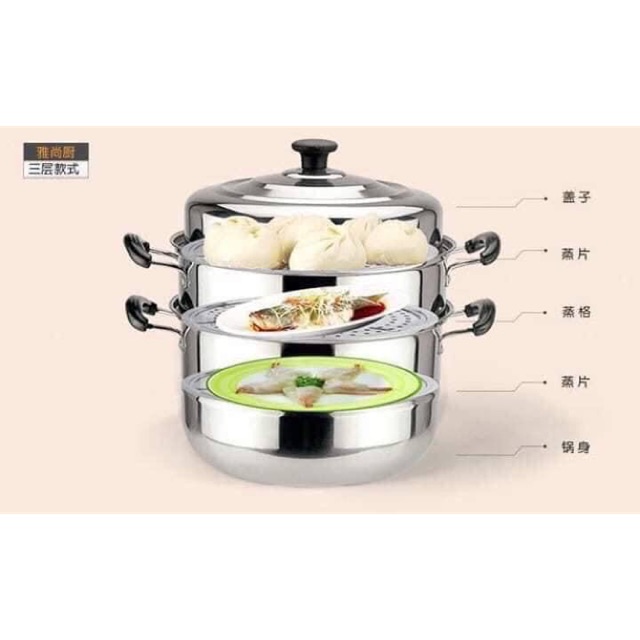 Nồi lẩu hấp 3 tầng 3in1*** Nồi hấp là dụng cụ không thể thiếu trong bếp người Việt được làm bằng chất liệu inox 430 cao cấp,không gỉ, bền bỉ, an toàn cho sức khỏe người sử dụng. Tay cầm được thiết kế chắc chắn, cách nhiệt đảm bảo an toàn cho người dùng