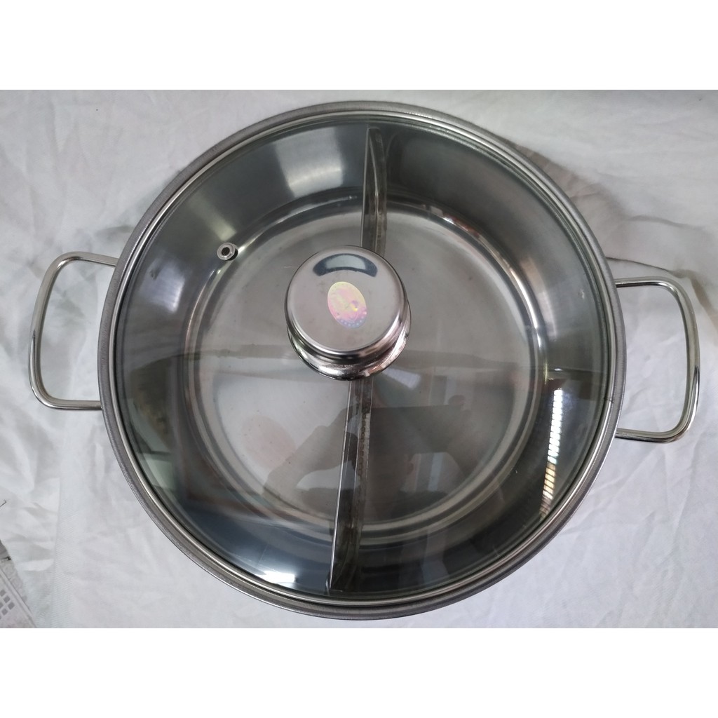 Nồi lẩu inox 2 ngăn có nắp kính cao cấp.Chất liệu: Inox cao cấp - có thể sử dụng cho bếp từ