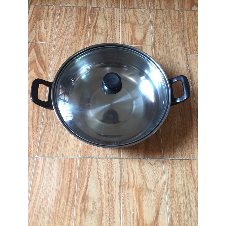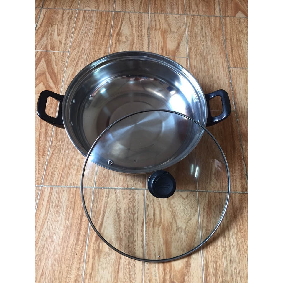 Nhà cửa & Đời sống > Dụng cụ nhà bếp > Nồi || Nồi lẩu INOX D26, Dùng được trên mọi loại bếp, Tay cầm cách nhiệt chống nóng, Vung tráng kính cường lực siêu bền, Siêu RCòn hàng