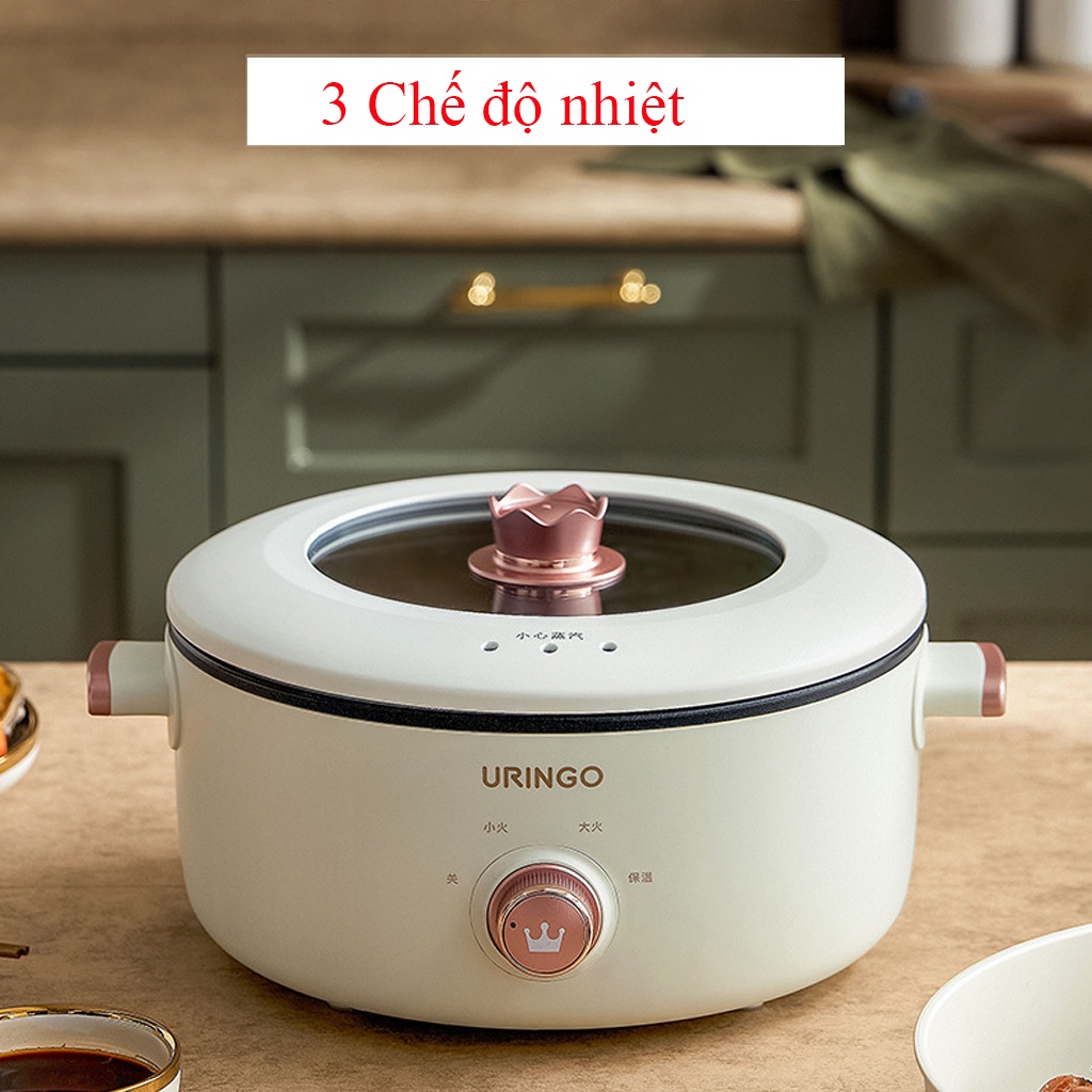 Nồi lẩu mini cắm điện đa năng kèm khay hấp cao cấp, tay cầm cách nhiệt, lớp chống dính teflon