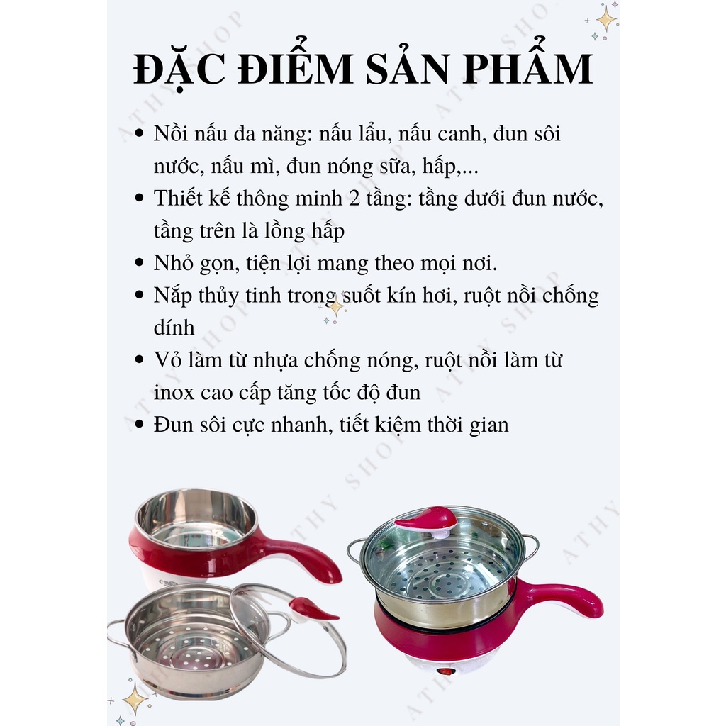 NỒI LẨU MINI CÓ LỒNG HẤP BẰNG ĐIỆN đun nước làm nóng thức ăn siêu tốc