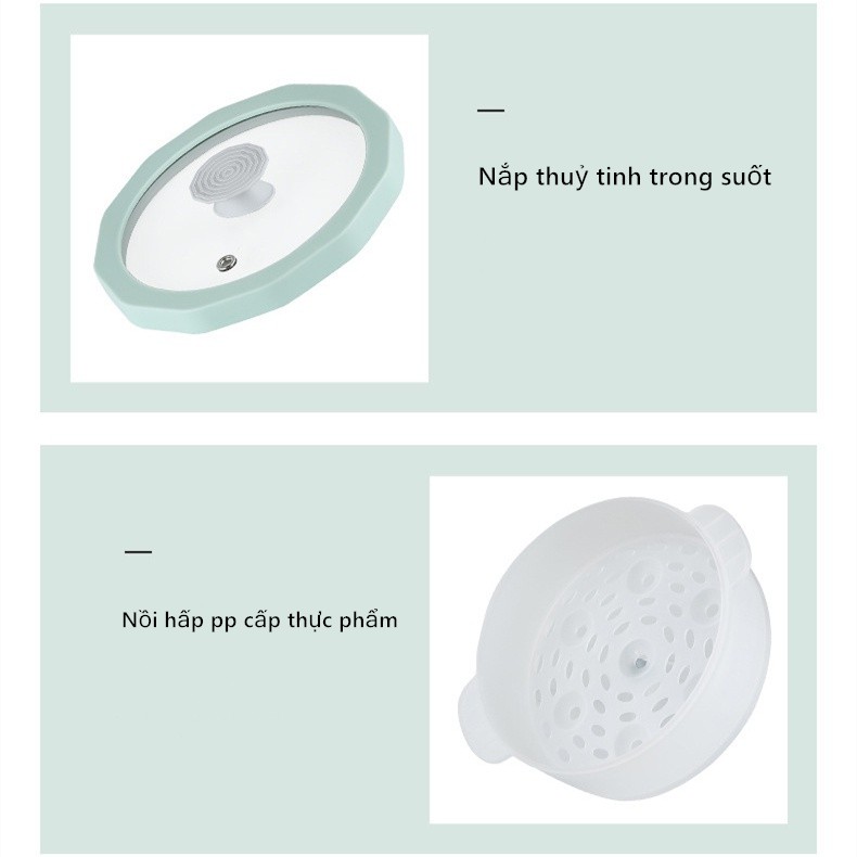 Chất liệu: nồi sứ chống dính, xửng hấp, nắp kính, lớp ngoài bằng nhựa PP chịu nhiệt!