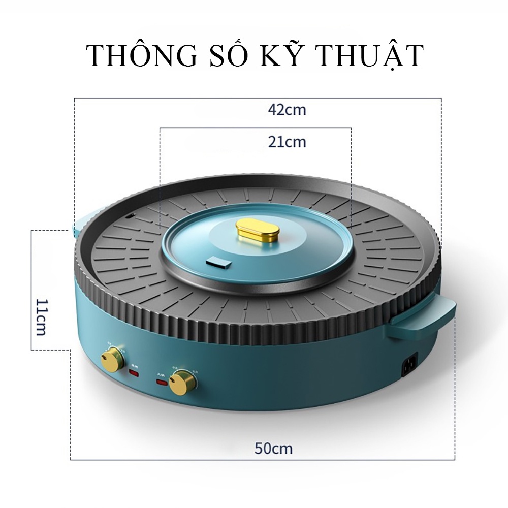 Nồi lẩu nướng 2 ngăn đa năng chống dính công nghệ Nhật, bếp nướng điện 2 trong 1 - Bảo hành 2 năm