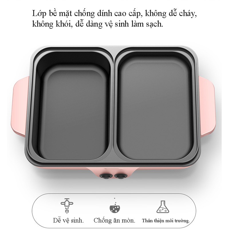 Nồi lẩu nướng 2 ngăn mini tiện lợi, đa năng dùng nấu lẩu, nướng, xào nấu, 2 bếp riêng biệt
