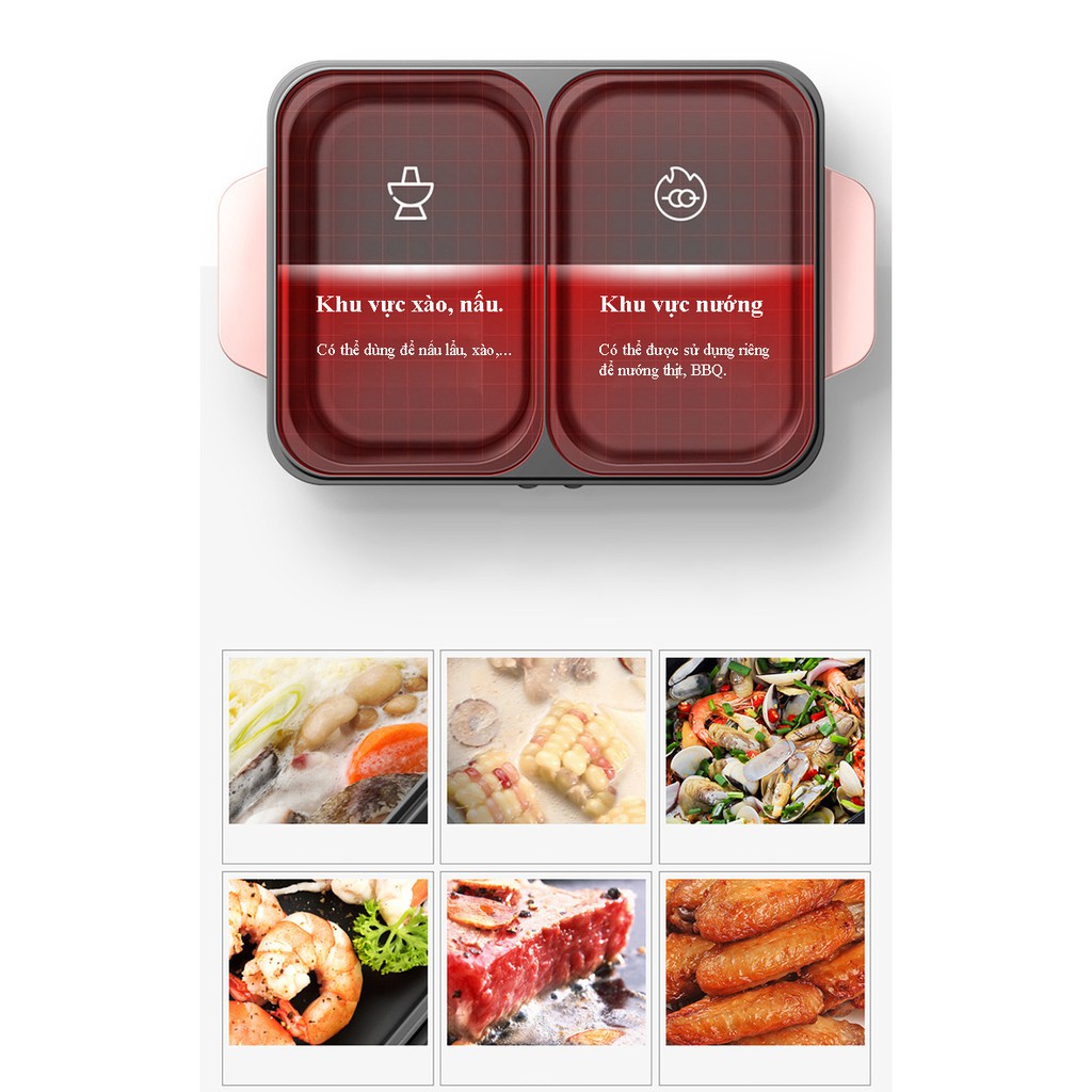 - Thiết kế tiện dụng có thể nhúng lẩu và nướng cùng lúc