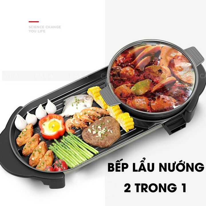 Nồi lẩu nướng 2 trong 1 chống dính JNS-DKL2 - Chất liệu Nhôm đúc nguyên khối cao cấp🍎 Bếp nướng điện BBQ JNS-DKL2 thiết kế độc đáo kết hợp giữa nướng và lẩu trên cùng một bếp, tiết kiệm không gian và thời gian cũng như nguyên liệu, bếp lẩu nướng đa năng, có khay hứng dầu mỡ hạn chế việc dầu ra ngoài đồng thời giúp thức ăn không bị ngấm dầu.