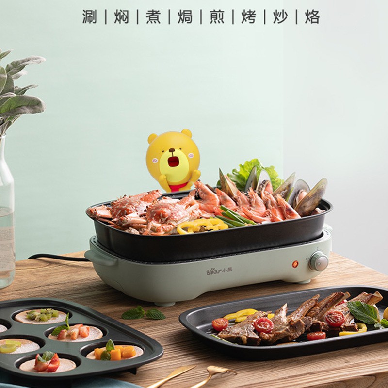Nồi lẩu nướng Bear 3 in 1 đa năng tiện lợi, thích hợp dùng trong các bữa tiệc tại gia đình.