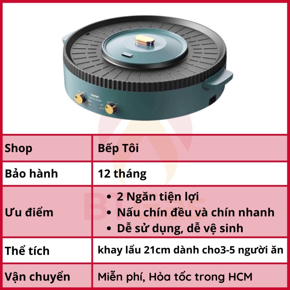 ✔️ Sản phẩm là sự kết hợp hoàn hảo giữa bếp nướng xung quanh và bếp lẩu ở giữa. Với bếp lẩu nướng đa năng Nineshield, người sử dụng có thể vừa nướng nhiều loại thức ăn và đồng thời nấu lẩu cùng một lúc. Đặc biệt nồi lẩu ở giữa có thể chia ngăn ( loại uyên ương) giúp bạn có thể ăn song song 2 loại nước lẩu cùng 1 lúc.