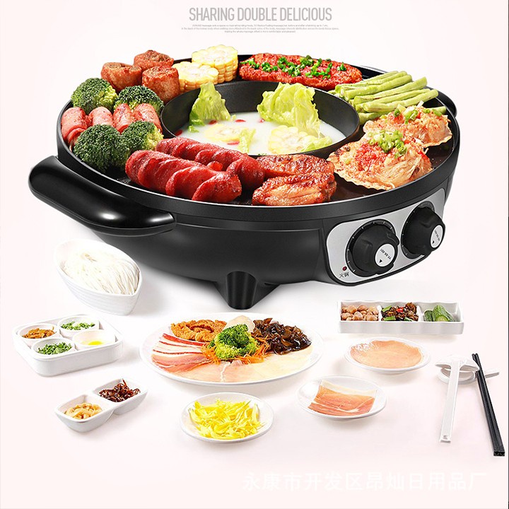 Giới thiệu Nồi lẩu nướng điện 2 trong 1 đa năng Hàn Quốc BH 1 tháng -( 35 x 17 x 42 CM )Khối lượng: 2.2 Kg