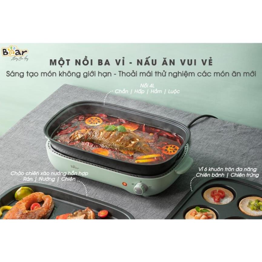 Nồi lẩu nướng điện 3 khay Bear bếp đa năng hàng quốc tế tích hợp 3 trong 1 siêu tiện lơi Gia dụng Bear Tuli Mart