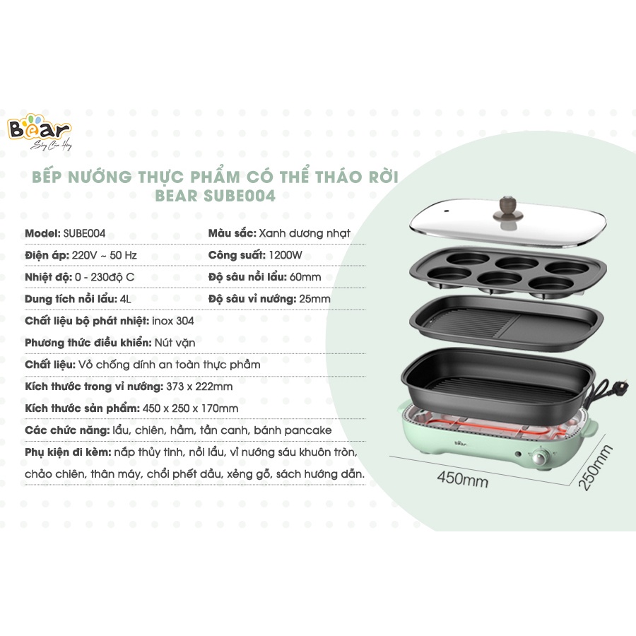 Nồi lẩu nướng đa năng bản quốc tế với bảng điều khiển tiếng anh, chăn cắm 2 chấu tiện lợi đi kèm hướng dẫn sử dụng tiếng Việt tiện lợi và dễ sử dụng. Đặc biệt, nồi lẩu 3 khay Bear SUBE004 sở hữu thiết kế thông minh, tích hợp 3 chức năng trong 1 siêu tiện lợi cho phép bạn làm nhiều món ăn khác nhau, thay đổi nhu cầu sửu dụng nhanh chóng.