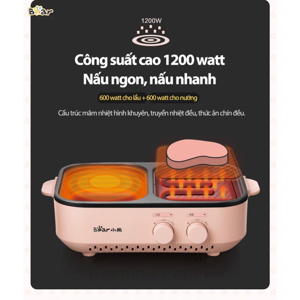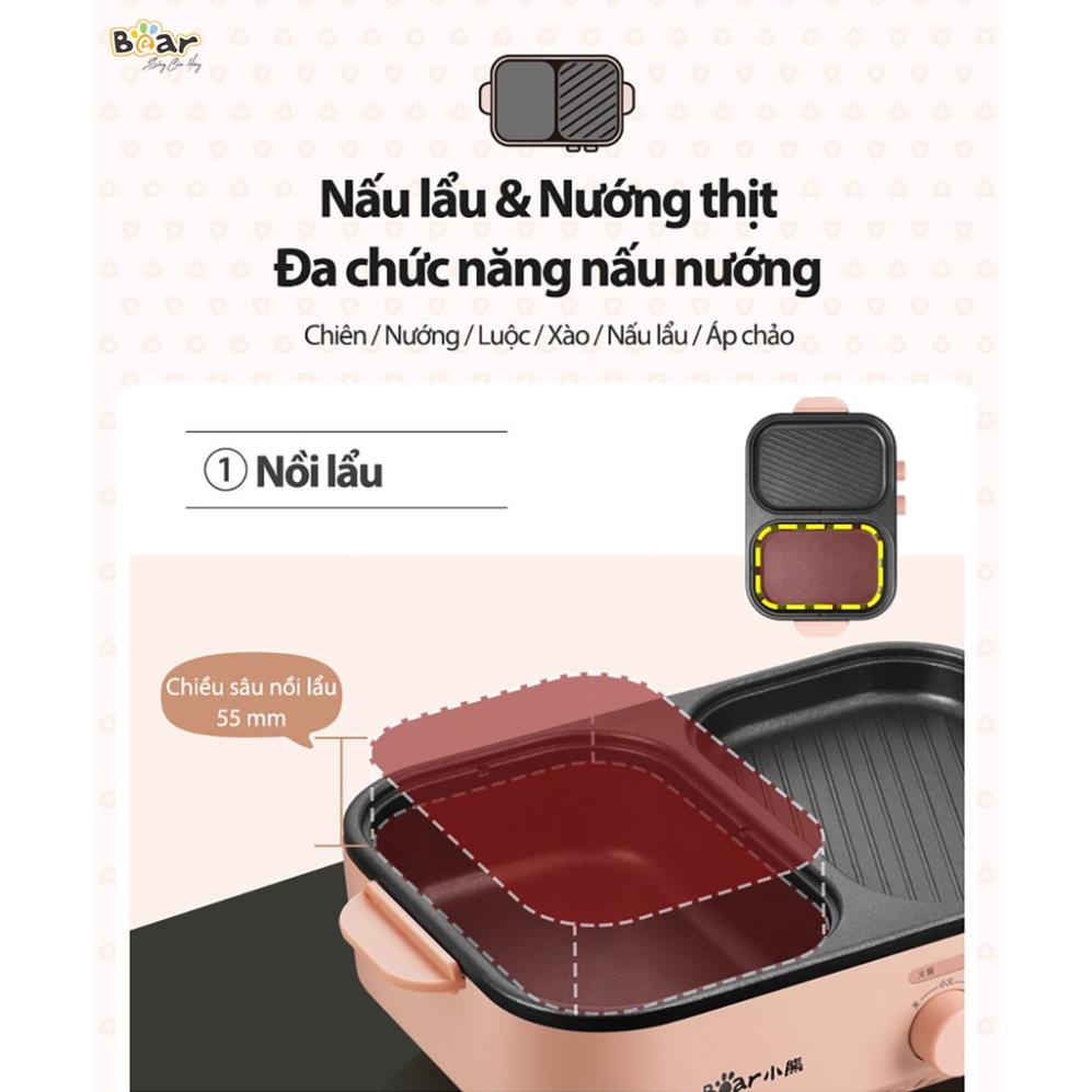 Nồi lẩu nướng mini Bear bếp lẩu kiêm nướng đa năng 2 trong 1 nhanh gọn tiện lợi Gia dụng Bear Tuli Mart