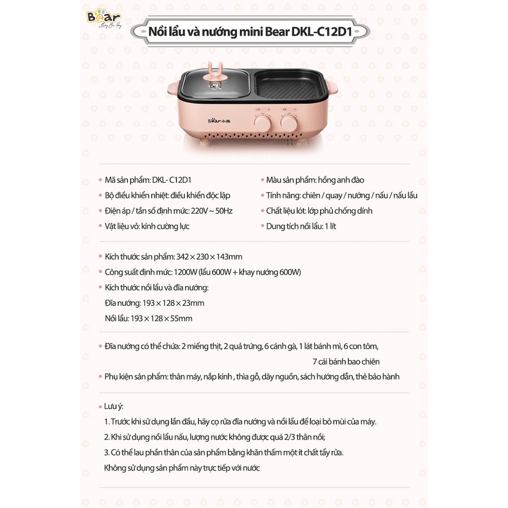 Giới thiệu Nồi lẩu nướng mini Bear bếp lẩu kiêm nướng đa năng 2 trong 1 nhanh gọn tiện lợi Gia dụng Bear Tuli Mart