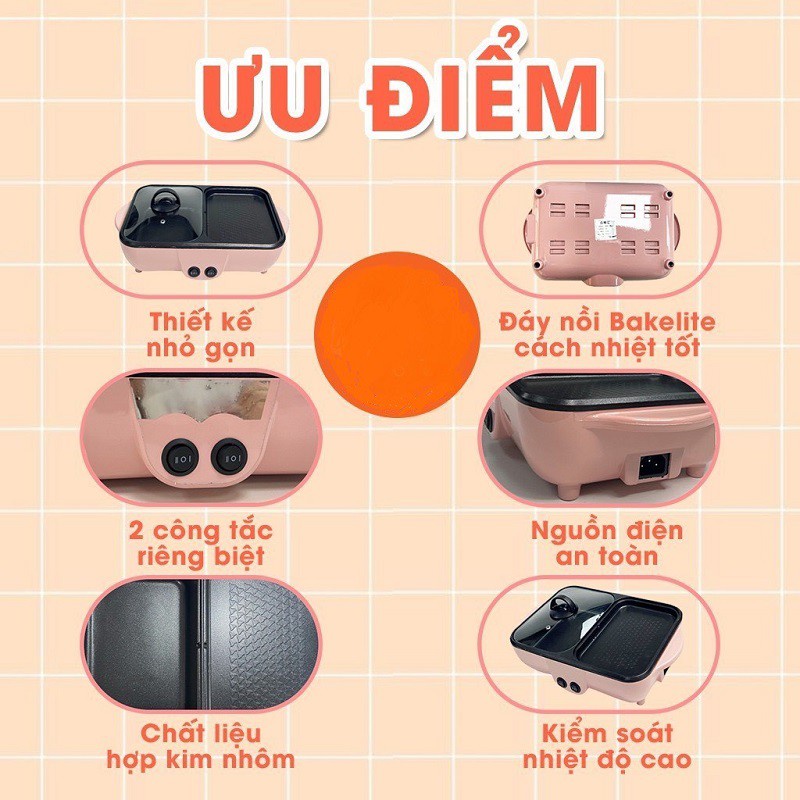 Nồi Lẩu Nướng Mini Hàn Quốc, Bếp Lẩu Nướng Đa Năng Cao Cấp Bảo Hành 3 Tháng