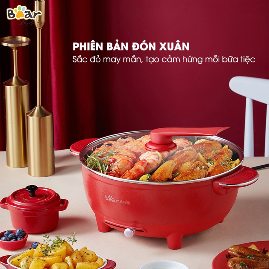 Nồi lẩu uyên ương 2 ngăn Bear SUBE006 (QT) , Dung tích lớn 6L, Bảo vệ quá nhiệt và bảo vệ cầu chì an toàn - BH 18 tháng
