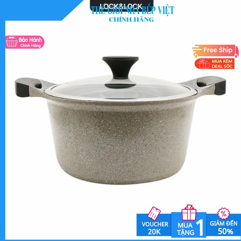 🥘🥘NỒI LOCK ĐÁ STONE PHI 24cm LOCK & LOCK LCA6244D (THÀNH CAO)