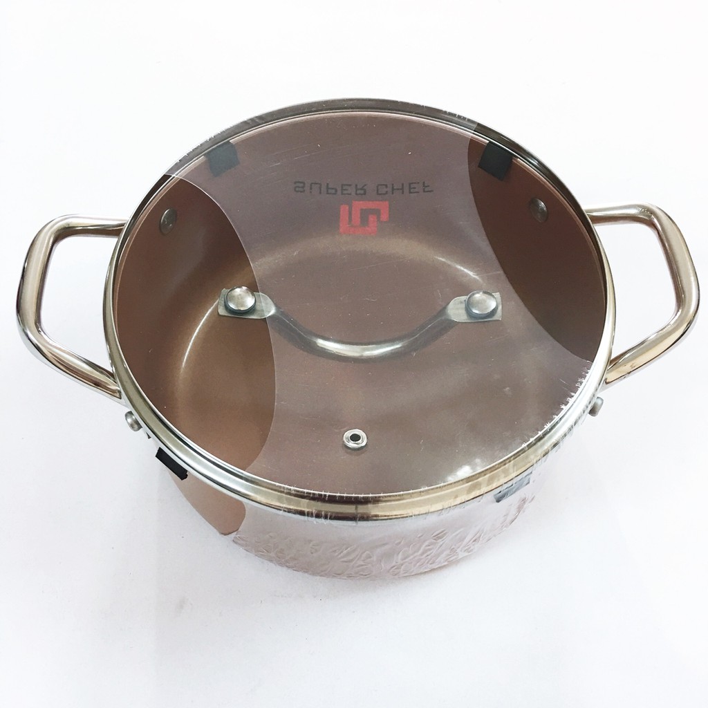 Nhà cửa & Đời sống > Dụng cụ nhà bếp > Nồi || Nồi nắp kính Chống dính SUPER CHEF Hợp kim tráng men đáy từ tay quai chống nóngCòn hàng