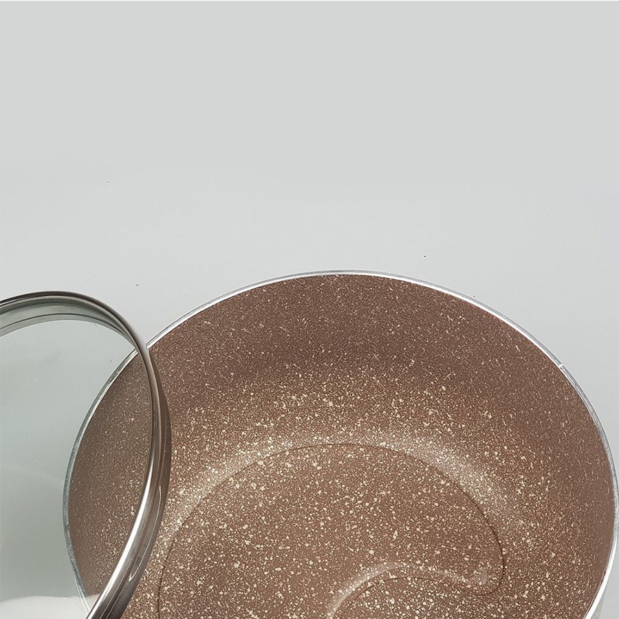 + Quánh phủ lớp vân đá màu xám nhạt cả bên trong lẫn bên ngoài, lớp vân đá này chịu được nhiệt độ rất cao mà không bị bong tróc, vệ sinh cũng dễ dàng hơn