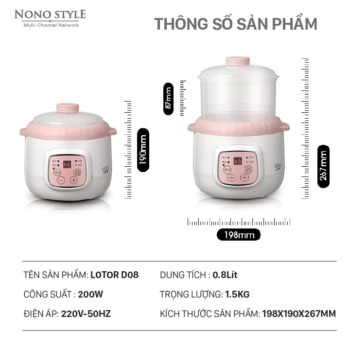Nồi Nấu Chậm Đa Năng Lotor D08 0.8 Lít - Bảo Hành 12 Tháng▶️ NỒI TIỀM ĐA NĂNG D08 - VỚI SIÊU NĂNG LỰC NHƯ BÀN TAY MẸ