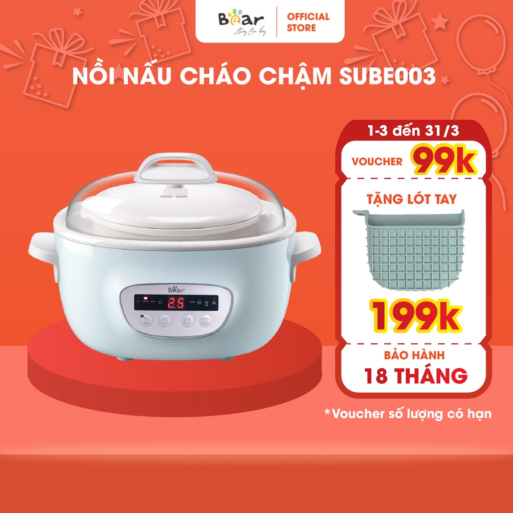 Nồi Nấu Chậm 2,5L Bear Chính Hãng Đa Năng Nấu Cháo, Chưng Yến Bản Quốc Tế Bảo Hành 18 Tháng - SUBE003