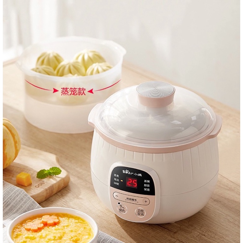 Giới thiệu Nồi nấu cháo chậm Bear 0,8l bản quốc tế , cách thủy và ninh hầm ăn dặm cho bé Bear 0,8L kèm lồng hấp bảo hành 18m