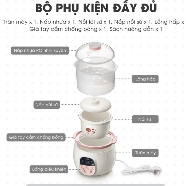 ✓ Nồi nấu cháo chậm Bear 1.6L SUBE002