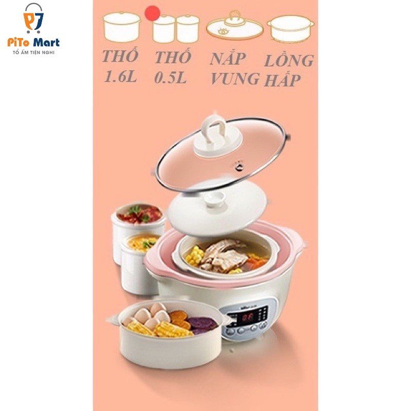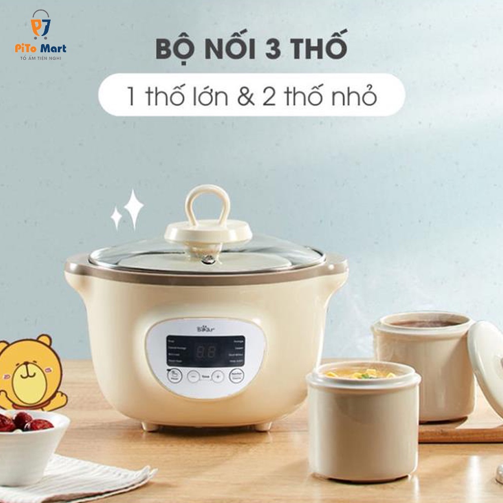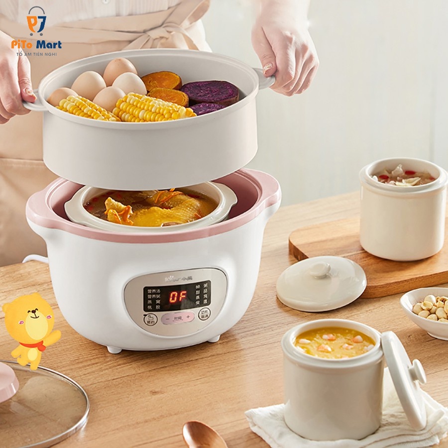 - Nồi nấu chậm 1.6L Bear nhỏ gọn mà đa năng, tối ưu hóa thời gian.