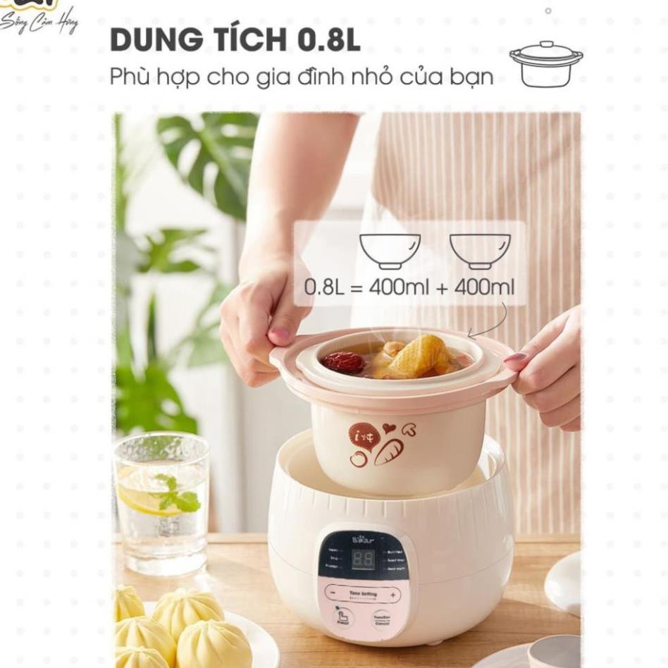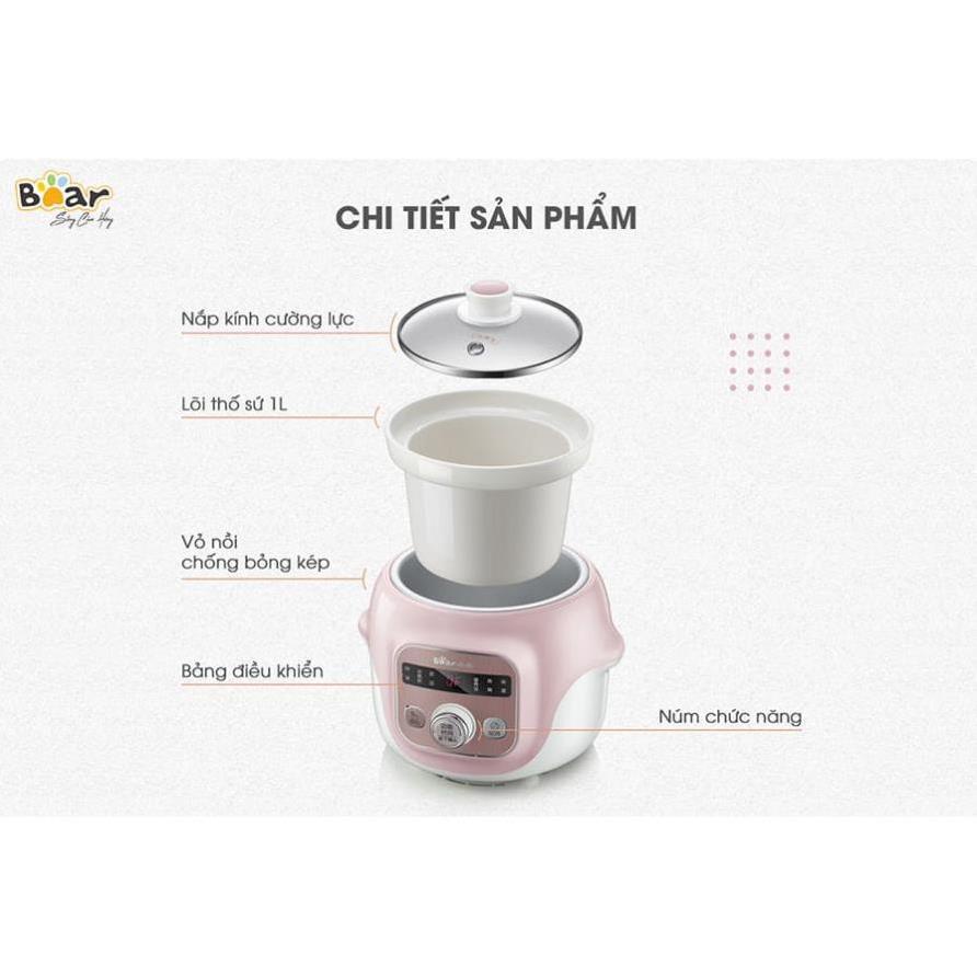 Nồi Nấu Cháo Chậm Cho Bé Bear 1L_Nồi Hầm Cháo Chậm Ăn Dặm, Chưng Yến, Ninh Cháo Đa Năng Có Lồng Hấp_Bảo Hành 12 Tháng