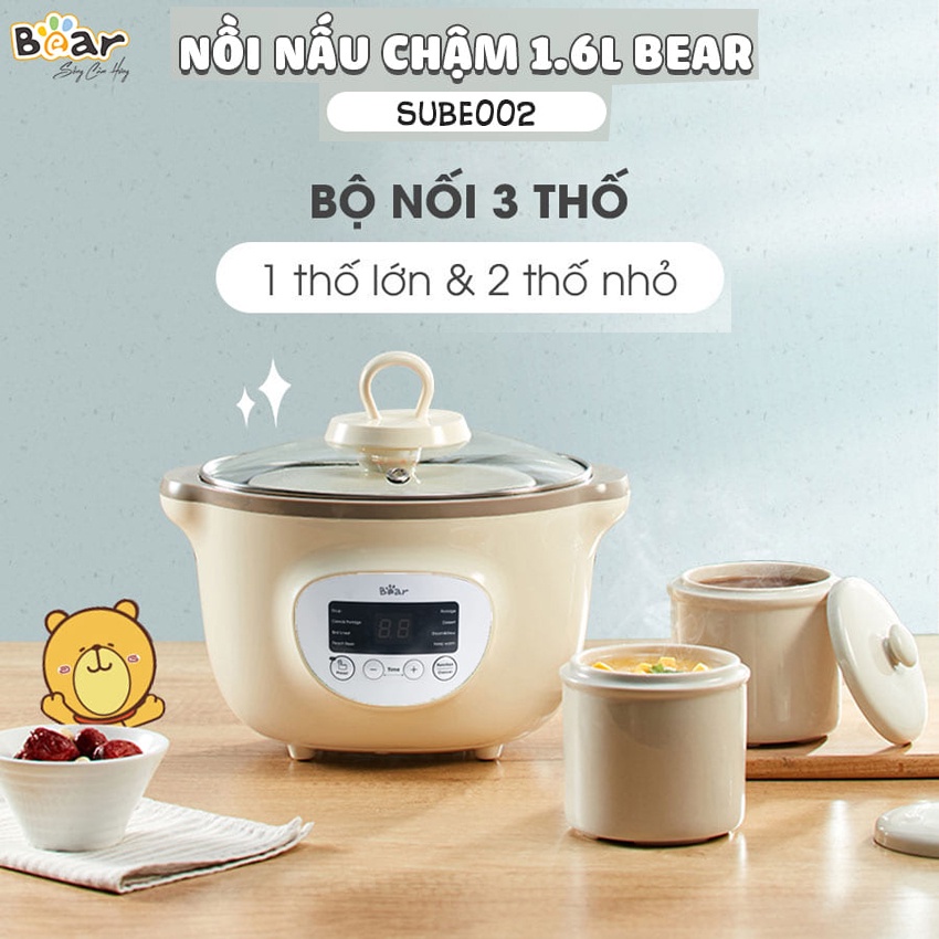 📣 NỒI NẤU CHÁO CHẬM BEAR SUBE002 - Dung tích 1.6L kèm lồng hấp