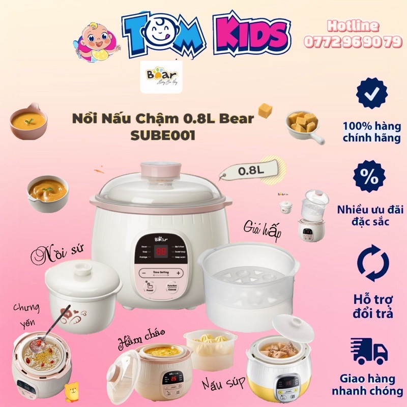 Nồi Nấu Cháo Chậm Hẹn Giờ Bear 's Bảng Quốc Tế Mẫu Mới 2021 ( 0.8 lit )