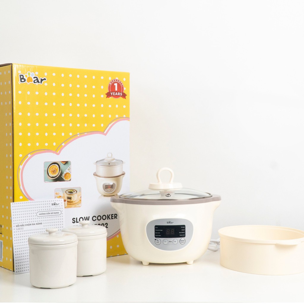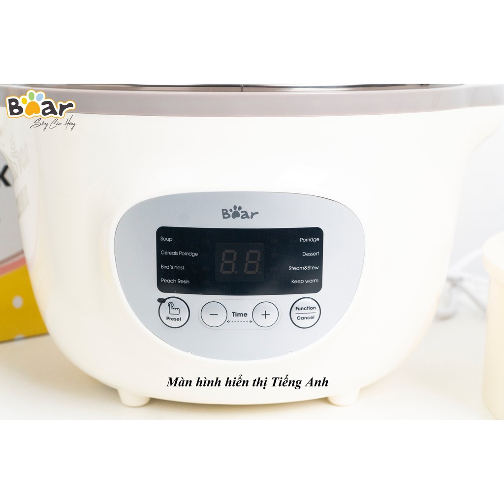 NỒI NẤU CHÁO CHẬM, NINH, HẦM, HẤP CÁCH THỦY BEAR 1.6 LÍT TÍCH HỢP 8 TRONG 1 (BẢN QUỐC TẾ)