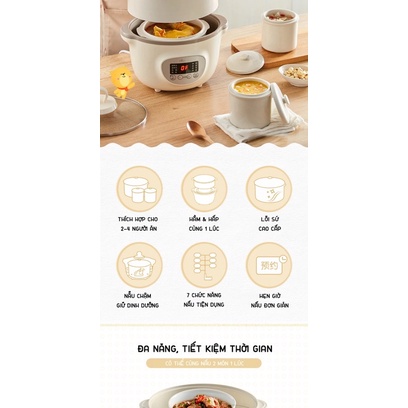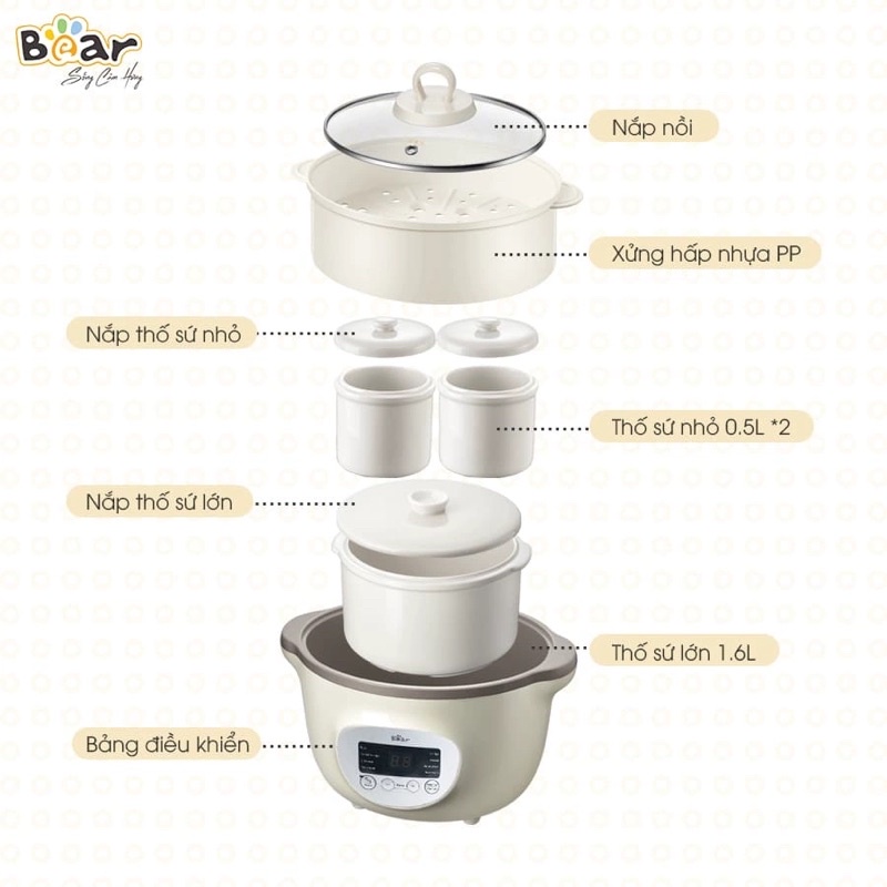1,6L Nồi Nấu Cháo Chậm, Nồi Ninh Hầm Đa Năng, Nấu Cách Thủy Cho Bé BEAR 1,6L - Bản Quốc Tế BH Chính Hãng 18 Tháng
