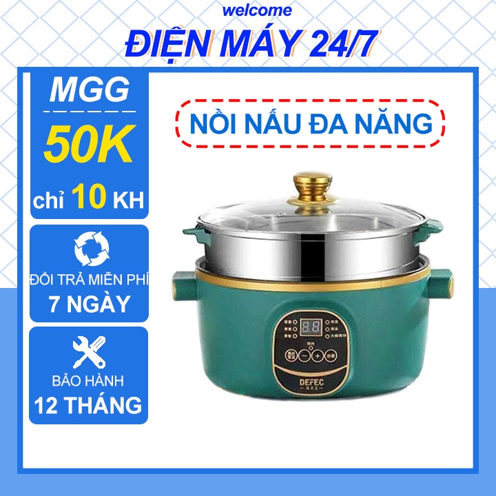 Nồi Nấu Đa Năng Mini 24cm 2,4L Chống Dính, 6 Chế Độ, Chiên, Xào, Hấp, Nấu Cơm, Nấu Lẩu, Kèm Giá Hấp INOX Tiện Dụng