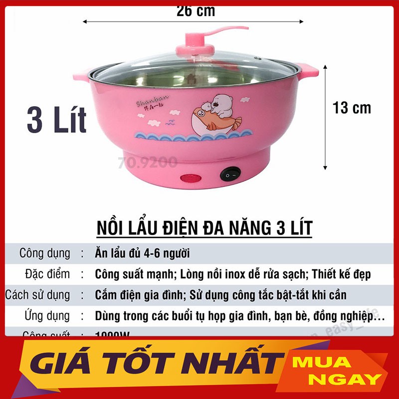 Nồi Nẩu Điện Mini 26cm 1000W Inox 304 - Bếp Lẩu Gia Đình 26cm Siêu Tốc Hàng Chuẩn
