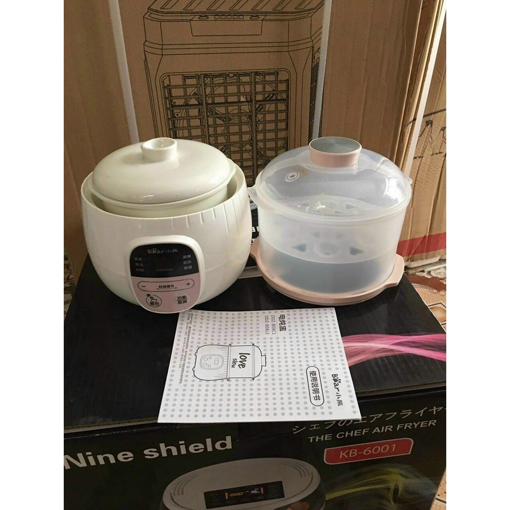 Nồi ninh hầm các thuỷ Bear( PHIÊN BẢN TIẾNG ANH), nấu cháo, nấu chè, hầm gà, chưng yến tiện dụng, đơn giản, gọn nhẹ