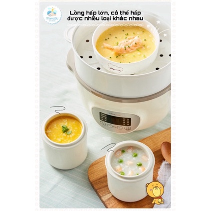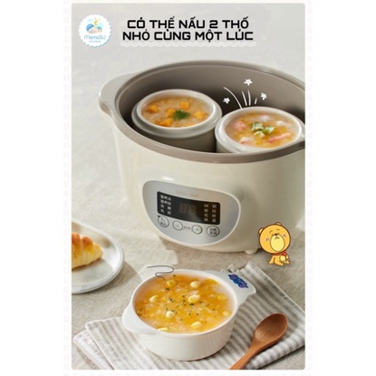 Dung tích thố sứ lớn 1,6L đủ 3 bữa ăn cho bé. Ngoài ra nồi còn có 2 thố sứ nhỏ 0,5L, các mẹ có thể nấu 2 món khác nhau cùng 1 lúc, tiết kiệm điện năng và thời gian.