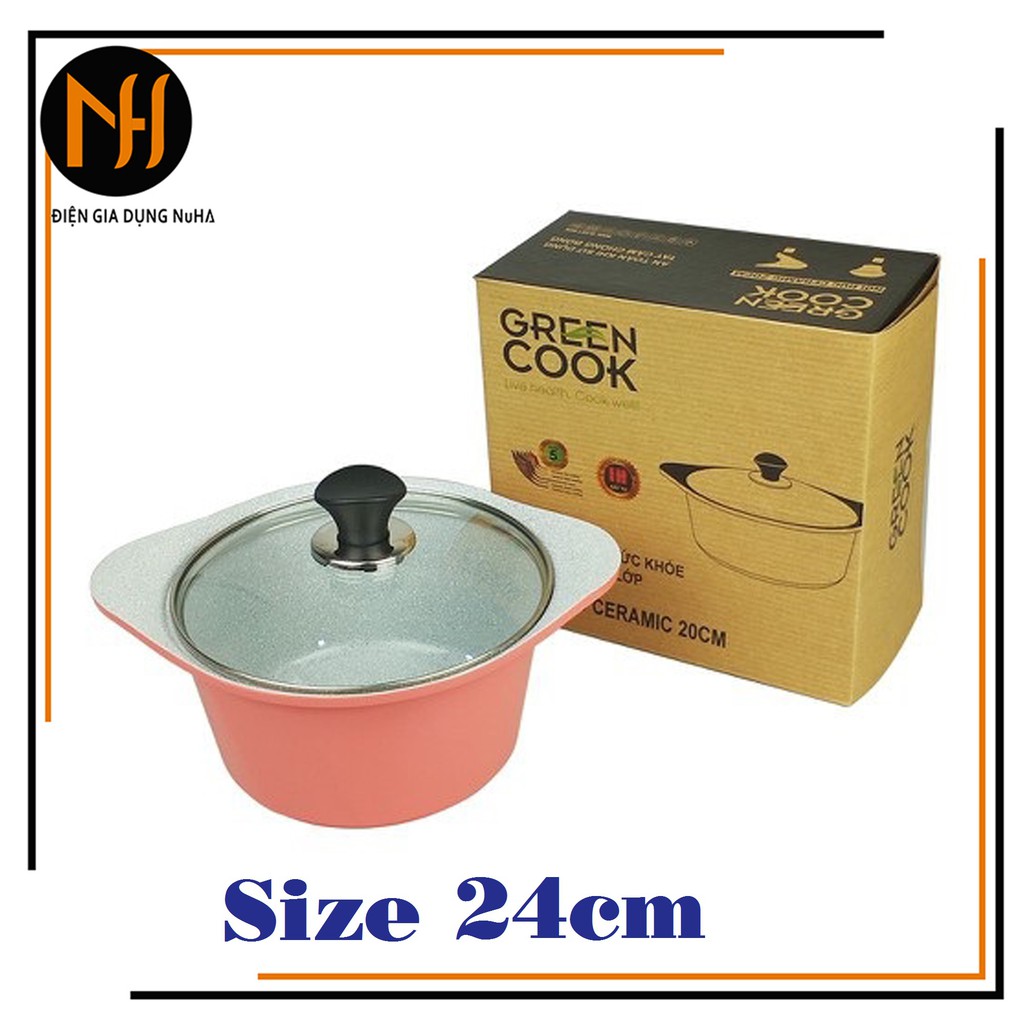 Nồi quánh đúc Ceramic đáy từ Greencook GCS02-24 size 24cm vân đá đẹp chuẩn hình ảnh