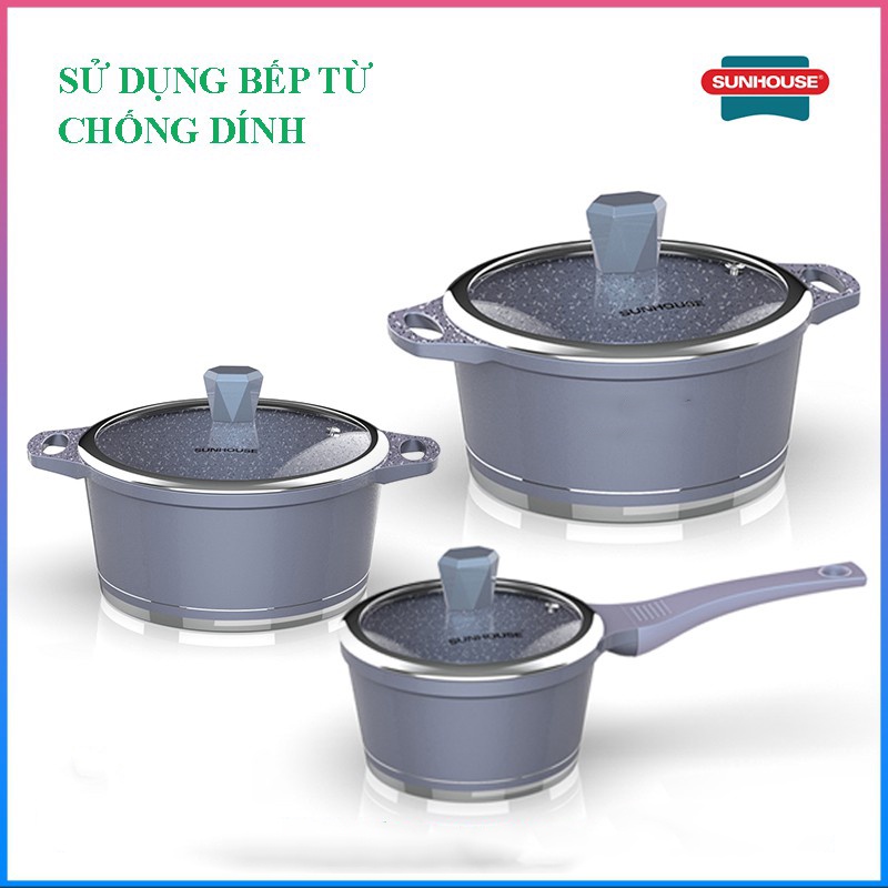 Nhà cửa & Đời sống > Dụng cụ nhà bếp > Nồi || Bộ nồi quánh vân đá đáy từ SUNHOUSE (CÓ CHỐNG DÍNH) Dùng trên tất cả loại bếpCòn hàng