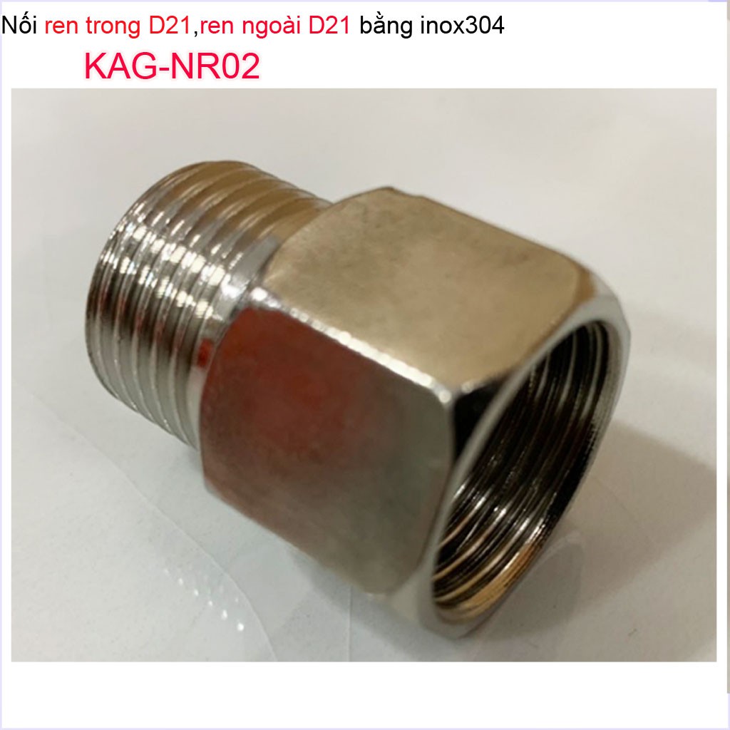 Giới thiệu Nối ren trong ren ngoài D21 Nixcor KAG-NR01 đồng, Đầu nối đổi ren KAG-RN02 inox- Phụ kiện đổi ren Inox-Đồng (cà Rá)