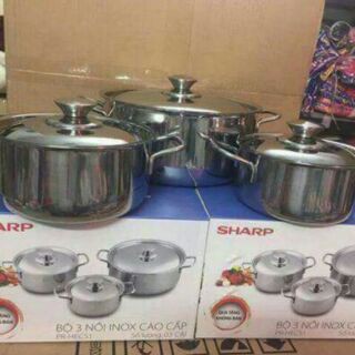Nhà cửa & Đời sống > Dụng cụ nhà bếp > Nồi || Bộ nồi sharp1 đáy inox cao cấp 3 cái, dùng được mọi loại bếp, kể cả bếp từCòn hàng