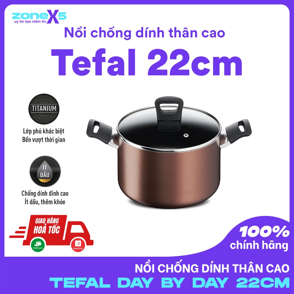 Nhà cửa & Đời sống > Dụng cụ nhà bếp > Nồi || Nồi thân cao Tefal Day By Day G1436105 22Cm - Lớp phủ Titanium nonstick chống dính tuyệt vời và độ bền vượt trộiCòn hàng