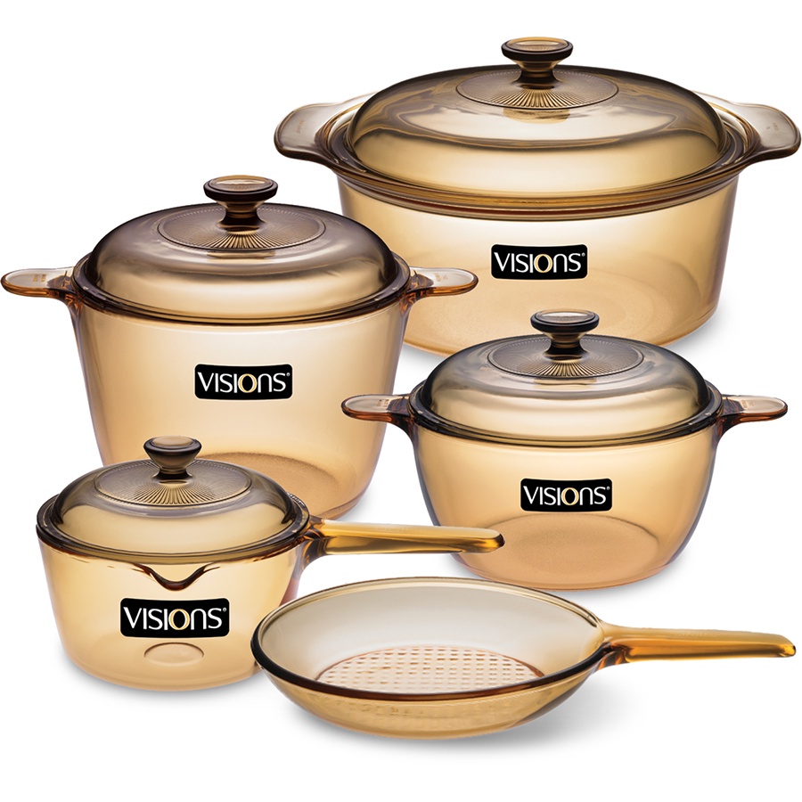 Bộ đồ nấu ăn Visions được làm từ những vật liệu cực kỳ đặc sắc, đặc biệt chịu nhiệt cao. Trong khi những nồi chảo bình thường có thể dễ dàng bị hư. Visions vẫn bền tốt và không bị biến dạng.