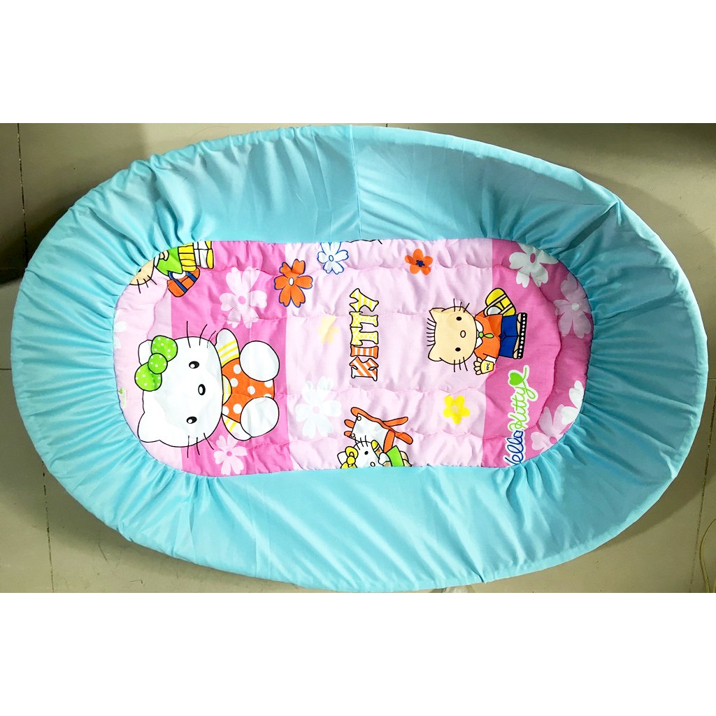 🍀 NỆM LÓT NÔI TRE: Bọc cho nôi đẹp hơn, bé nằm êm lưng hơn, hạn chế được KHUYẾT ĐIỂM DẰM TRE. Nệm lót làm bằng vải cotton thắng lợi nên đảm bảo vải mát, không gây nóng cho bé. Khách chú ý nệm lót Viet Kids được may với máy dập bông công nghiệp nên dằn chỉ zic zac đều đặn xuyên suốt tấm nệm, giúp thông hơi, chạy khí dưới mình bé, viền vắt sổ tỉ mỹ, chỉ may chắc chắn, bông gòn cotton tấm có thể giặt máy thoải mái, không pha tạp, vải mặt cotton xịn không ra màu, không gây ích ứng da bé khi phải nằm lâu nhé.