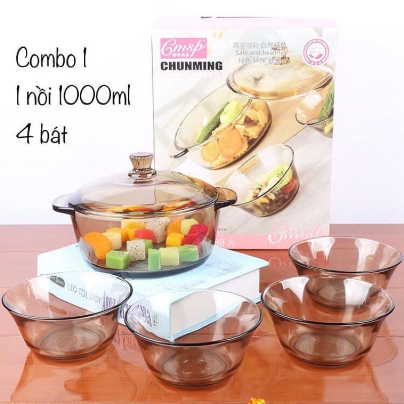 Bộ nồi và 4 chén thủy tinh ChunmingGiá #165k
