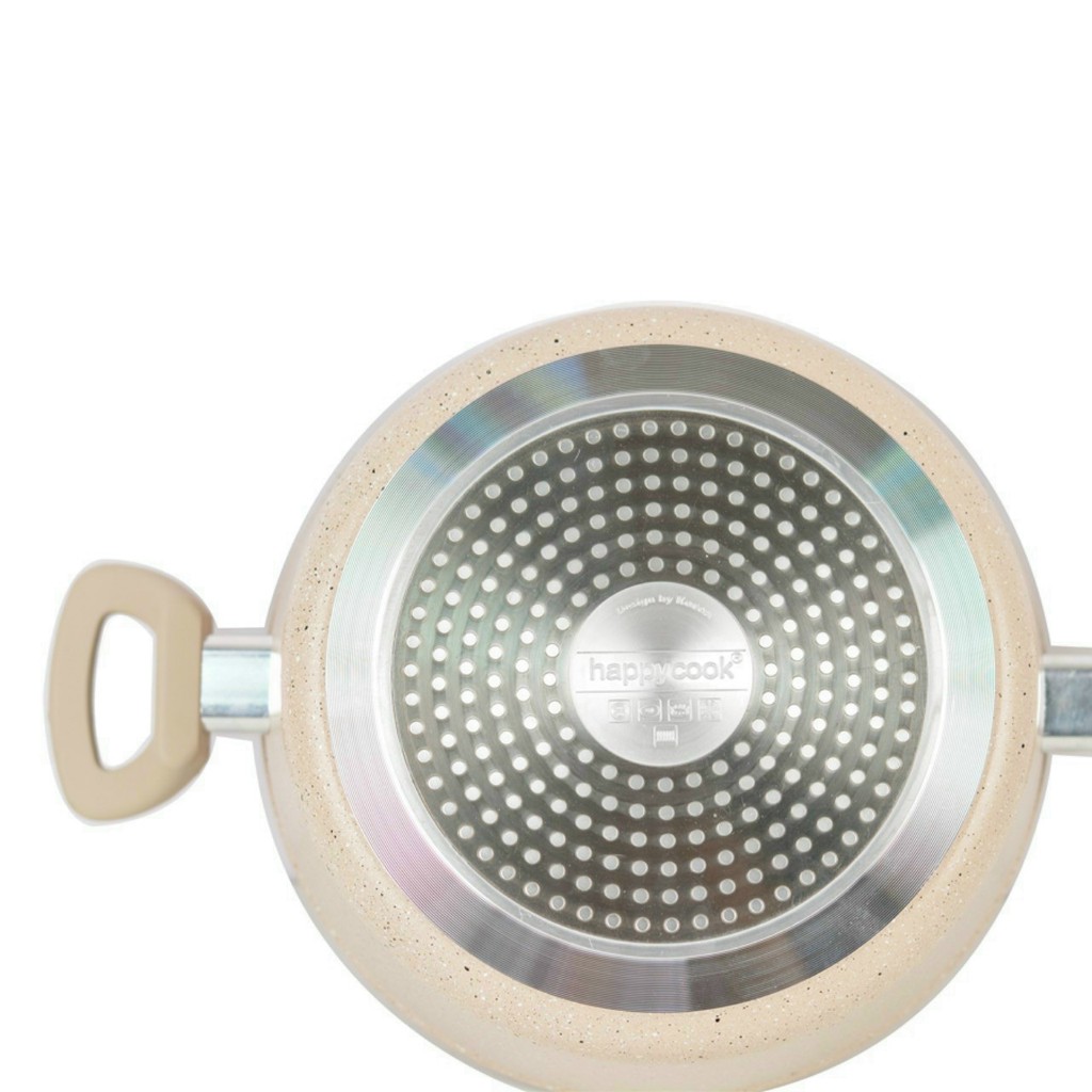 Sản phẩm có cấu tạo từ chất liệu nhôm, được phủ lớp chống dính vân đá ở cả 2 mặt. Toàn bộ lòng nồi được phủ lớp chống dính đá hoa cương sáng màu vừa sang trọng vừa chống dính cực tốt. Lớp chống dính này hoàn toàn không chứa PFOA, không phản ứng với thức ăn và an toàn tuyệt đối cho sức khỏe.