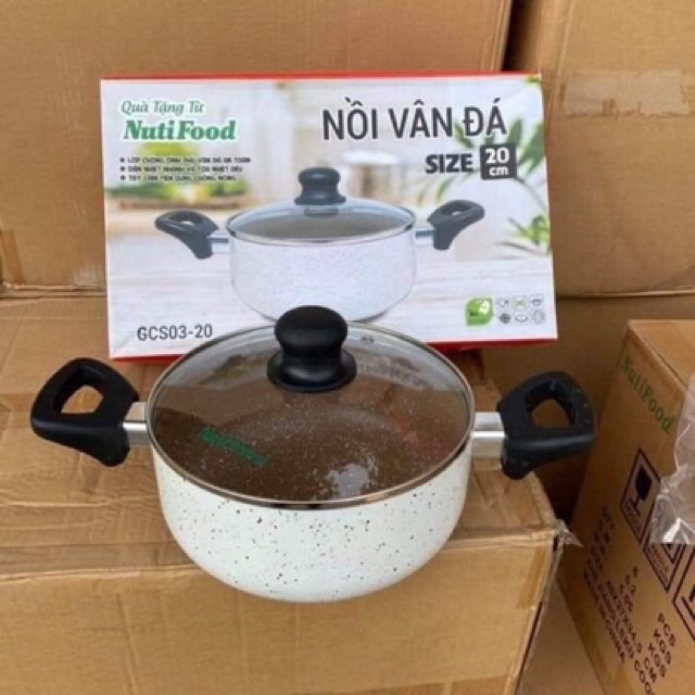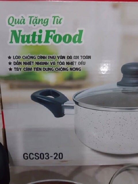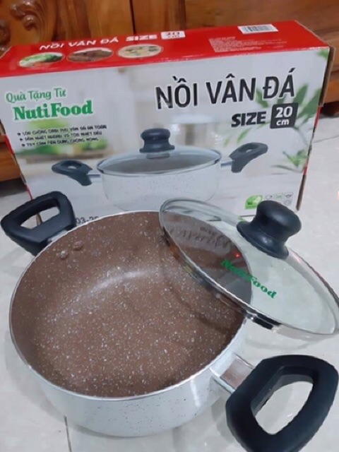 Nồi vân đá Size 20cm - HKM của sữa NutifoodCó thể xào, nấu như tráng trứng, rán thịt, xào rau ... mà không cần sử dụng dầu mỡ, giúp bạn có bữa ăn lành mạnh