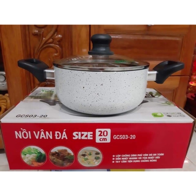 Nhà cửa & Đời sống > Dụng cụ nhà bếp > Nồi || Nồi vân đá Size 20cm, lòng vàng nồi chống dính cực tốt. Nồi đá ceramicCòn hàng