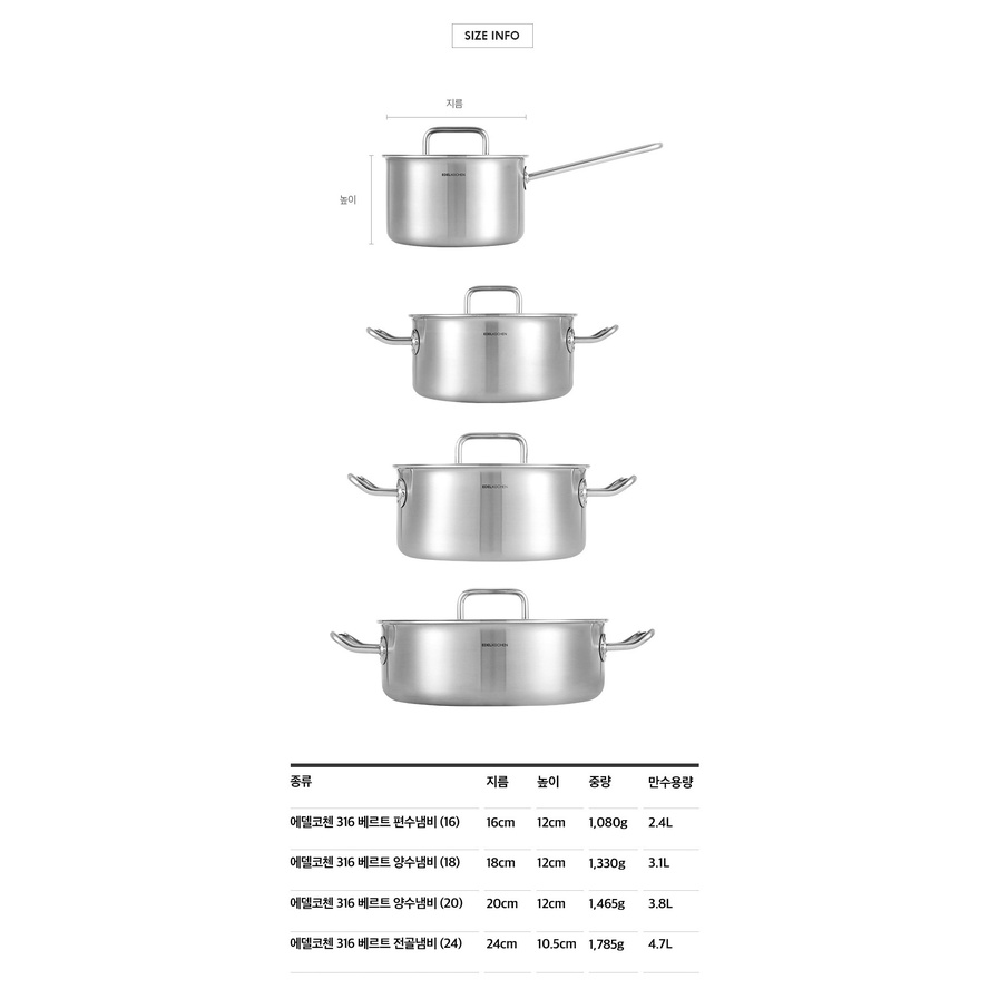 Nhà cửa & Đời sống > Dụng cụ nhà bếp > Nồi || Bộ Nồi Vert 3 lớp Edelkochen, chất liệu inox 316 cao cấp (Quánh, Nồi lùn, Nồi cao)Còn hàng